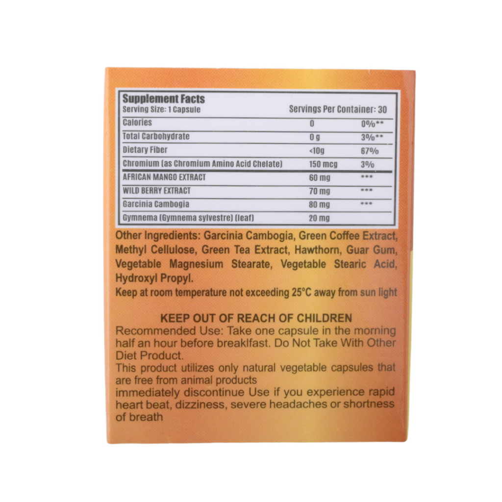 - مستخلص الجارسينيا كامبوجيا والذي يعتبر مادة فعالة أساسية في زيادة معدل الحرق وتقليل دهون البطن ومنع تكونها من جديد، وبالتالي سرعة خسارة الوزن، كما يساهم كذلك في ضبط معدلات الكوليسترول في الدم.