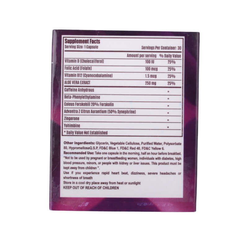 - مع العديد من المكونات الأخرى المعروفة بفاعليتها في زيادة معدلات الحرق وسد الشهية، مثل: (مستخلص القهوة الخضراء - مستخلص الشاي الأخضر).